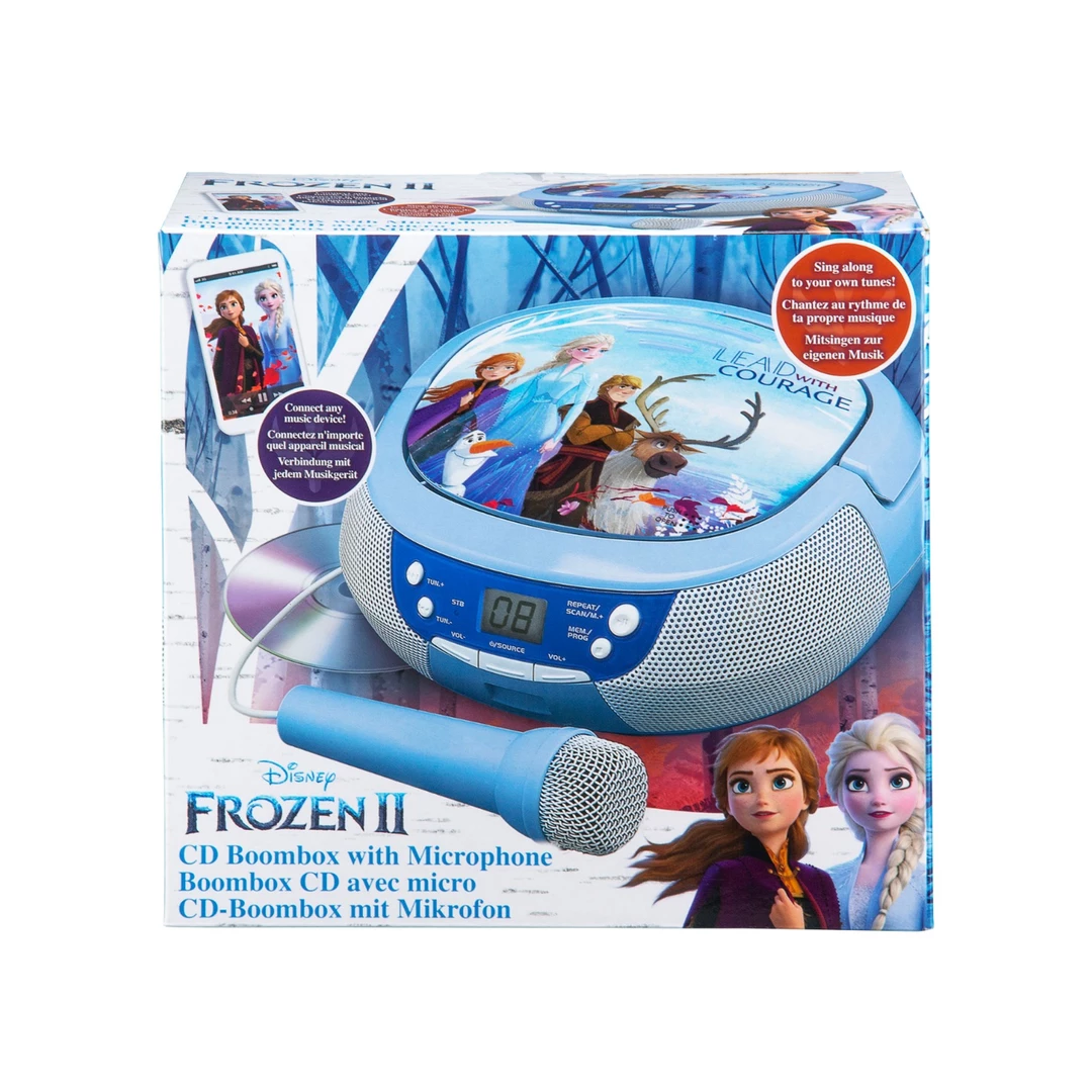 Experience music with the Frozen 2 Boombox with Real Working Microphone. Featuring a fun design with all three main characters from Disney’s Frozen, you can add it to your child’s Disney themed room and show their love for the film through sound.