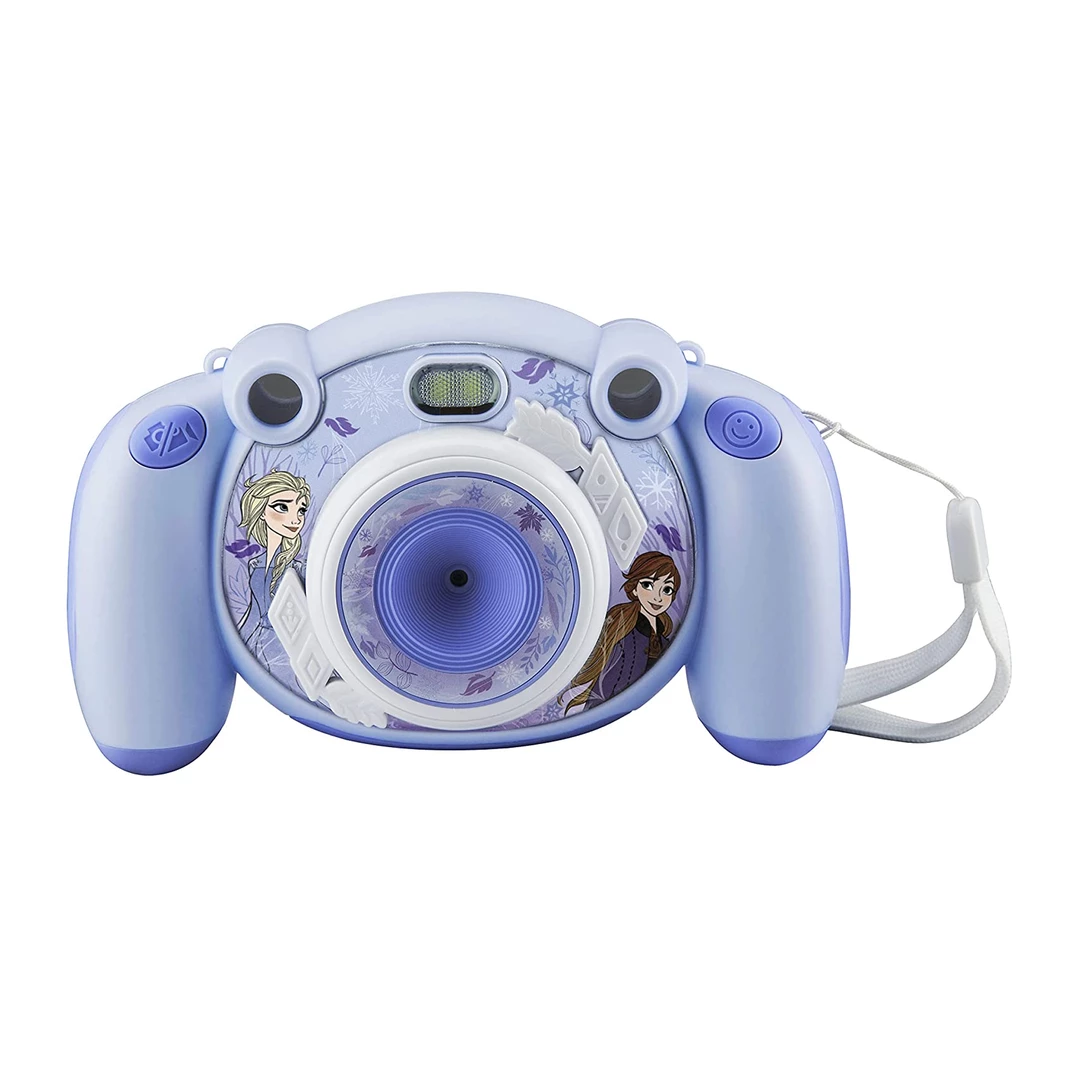 - Decorate & Play: Digitally decorate your images using over 25 different built-in photo frames and ‘stickers’ inspired by your favorite Frozen characters. Plus, this camera for kids also includes the Snake Game!