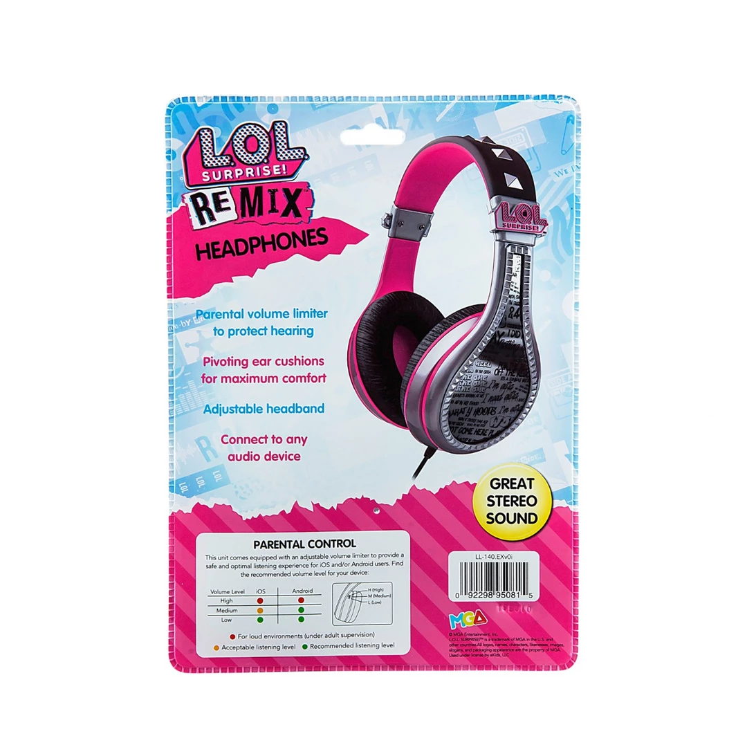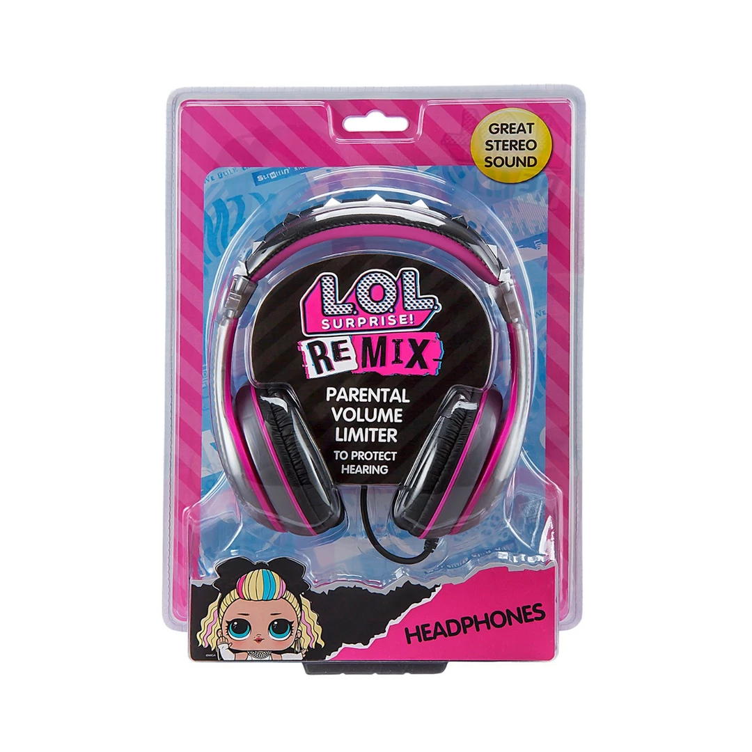 The L.O.L Surprise Remix child friendly headphones are here! Listen to whatever you like in safety, comfort, and style. These high quality headphones are equipped with a volume limiting switch to ensure safe sound levels for kids. The cute L.O.L graphics are perfect for your little ones. Plug in your audio device and listen to your favourite music. The soft ear cushions and adjustable headband provide comfort and quality, so you can enjoy your music for as long as you like. This will make the perfect gift or birthday present for your one.