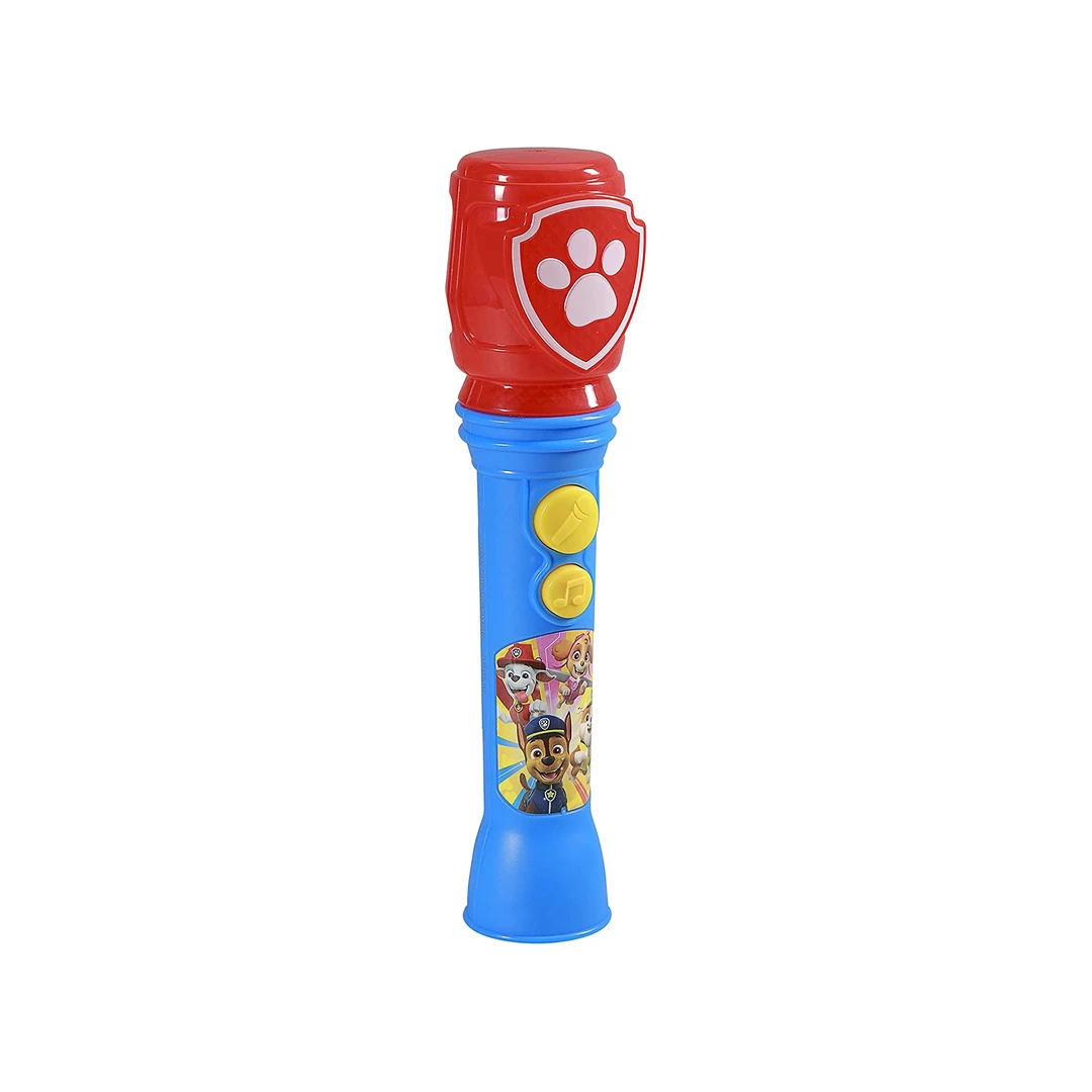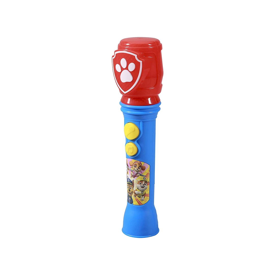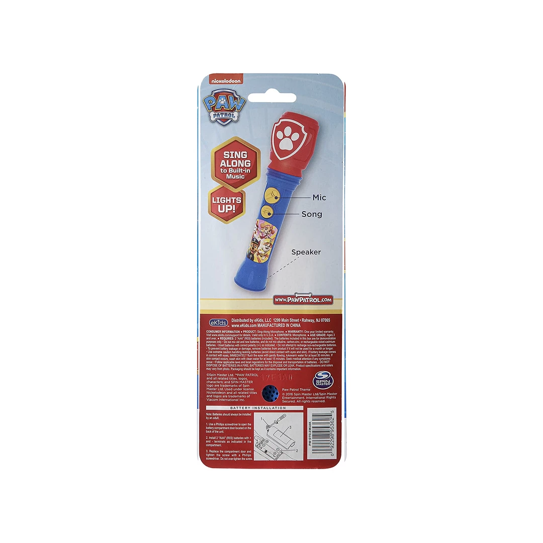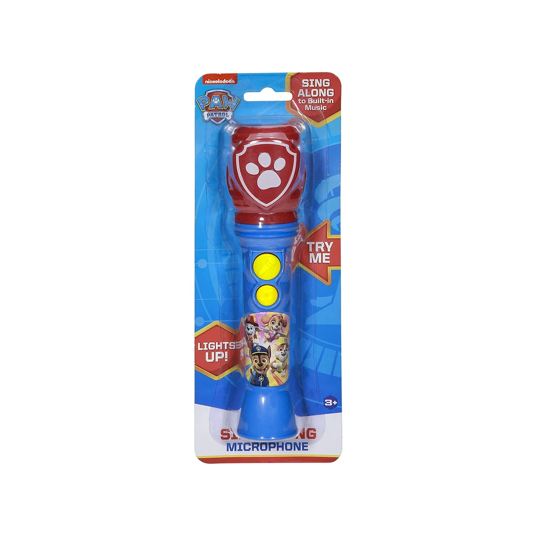 This Paw Patrol Microphone is ready for singalong fun! Press the Song Button to hear built-in music, or connect your MP3 player via the aux-in jack to perform any playlist in your collection. Flashing lights ensure you are always in the spotlight. Featuring adorable graphics inspired by Paw Patrol, this toy microphone will make the perfect gift or birthday present for your little one!