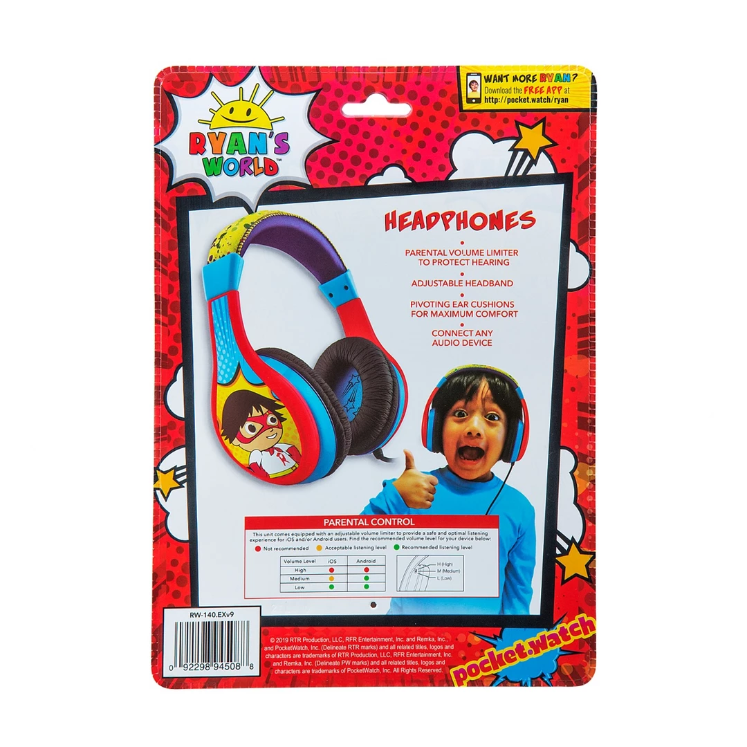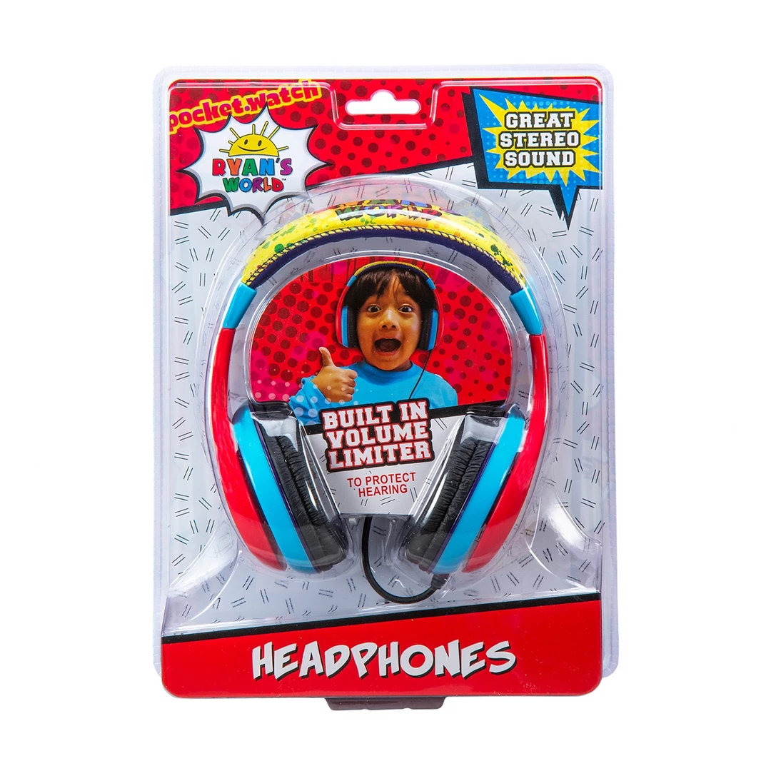 Ryan’s World Kids Headphones look as great as they sound! Listen to whatever you like in safety, comfort, and style. These high quality headphones are equipped with a volume limiting switch to ensure safe sound levels for kids. The Ryan’s World graphics are perfect for your little ones. Plug in your audio device and listen to your favourite music. The soft ear cushions and adjustable headband provide comfort and quality, so you can enjoy your music for as long as you like. This will make the perfect gift or birthday present for your one.