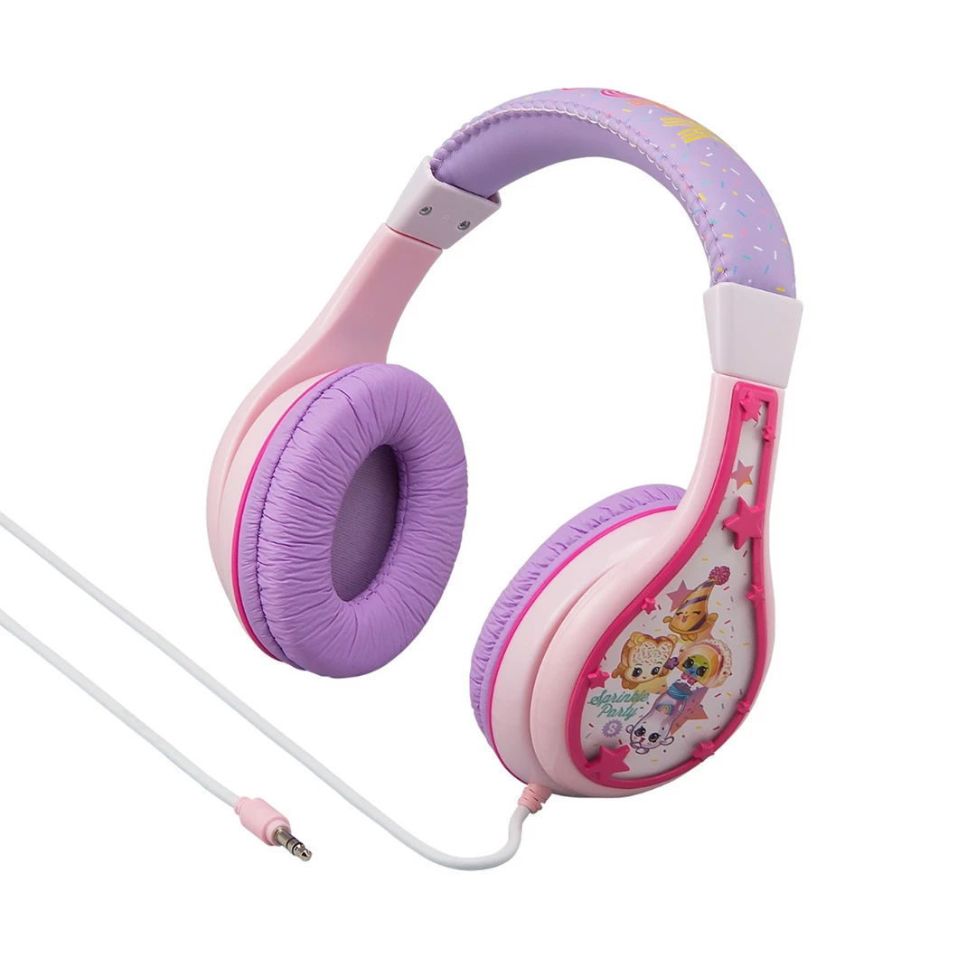 The Shopkins child friendly headphones are here! Listen to whatever you like in safety, comfort, and style. These high quality headphones are equipped with a volume limiting switch to ensure safe sound levels for kids. The cute sprinkle party graphics are perfect for your little princess. Plug in your audio device and listen to your favourite music. The soft ear cushions and adjustable headband provide comfort and quality, so you can enjoy your music for as long as you like. This will make the perfect gift or birthday present for your one.