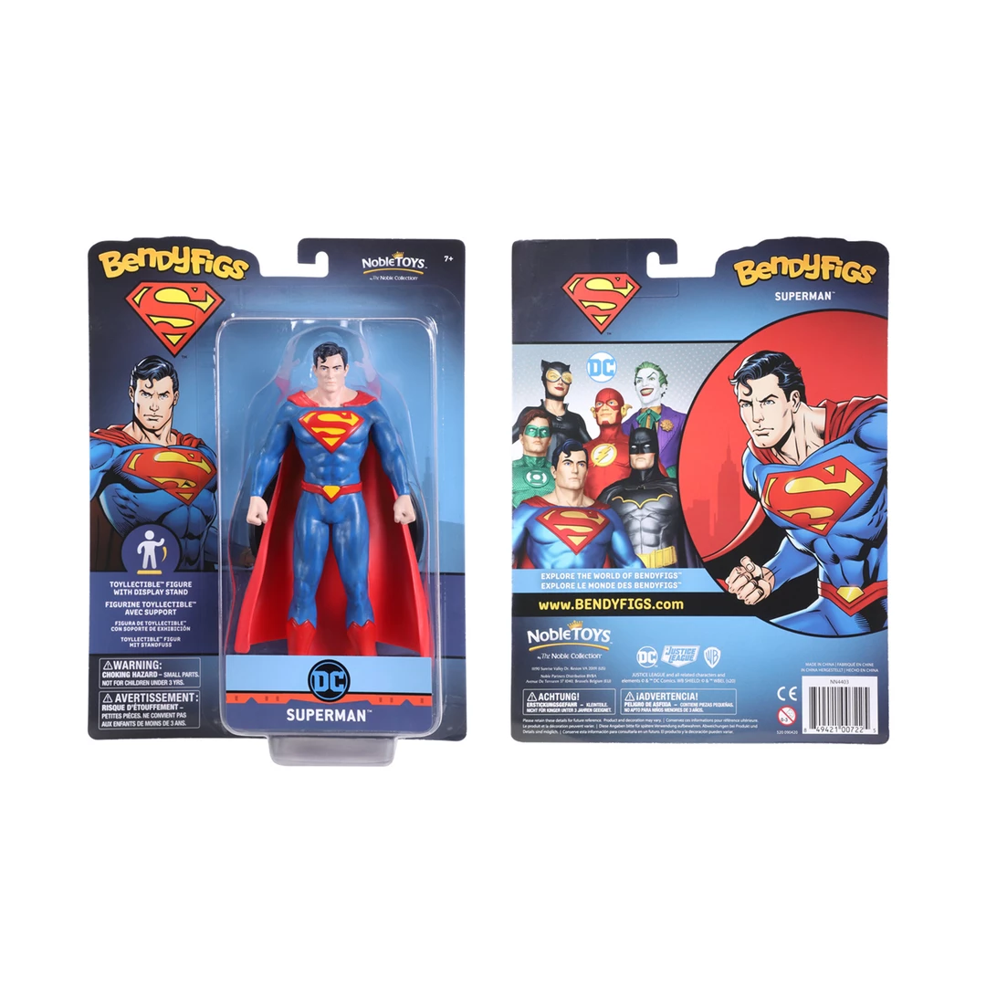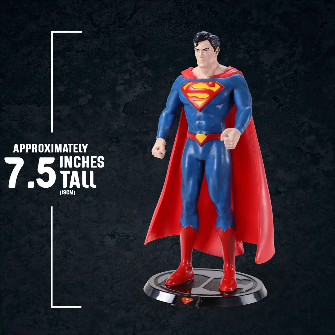 - This authentic, intricate bendable figure of DC Comics’ classic hero Superman, aka Clark Kent, includes a stand for proud display.