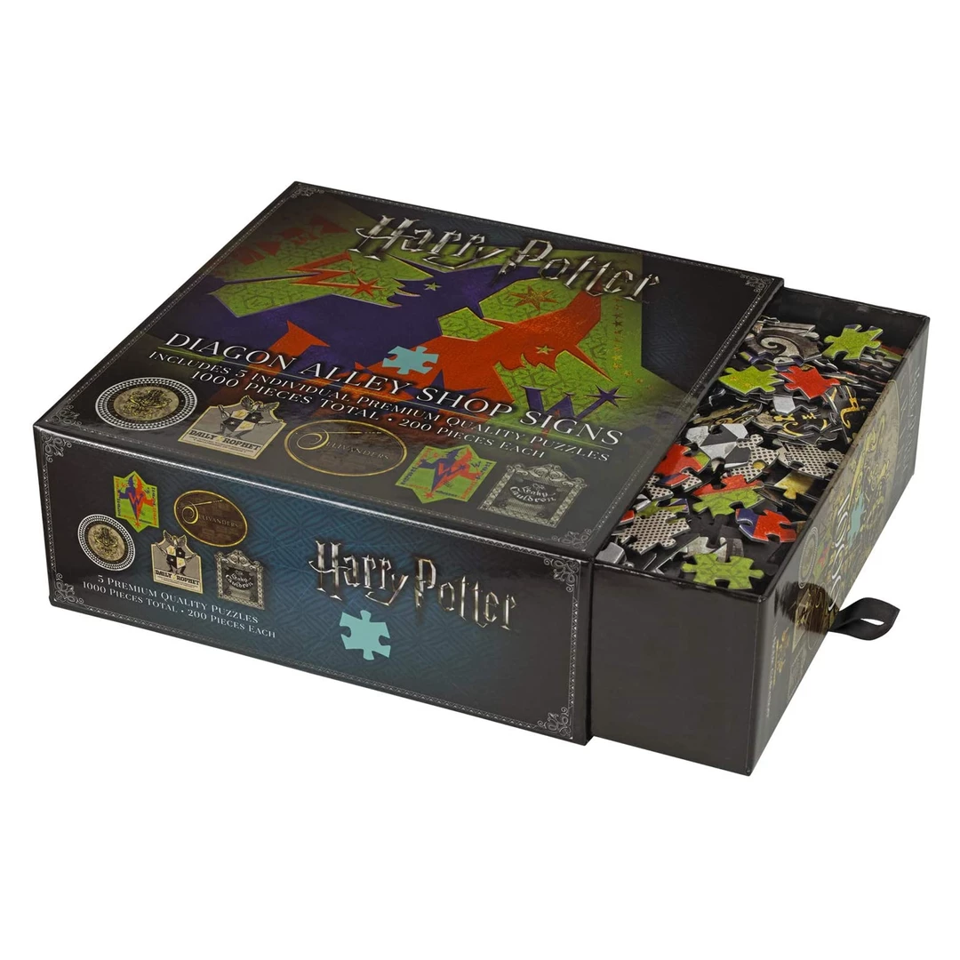 - Official Licensed Collectors Item– Once assembled this jigsaw set recreates Diagon Alley shop signs – including Gringotts Bank, Ollivanders, The Leaky Cauldron, The Daily Prophet and Weasleys’ Wizard Wheezes.