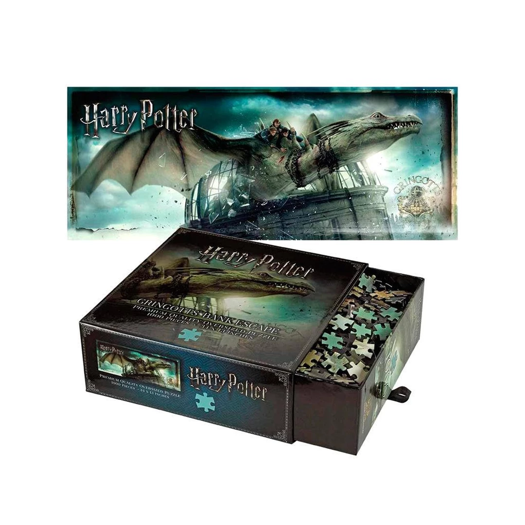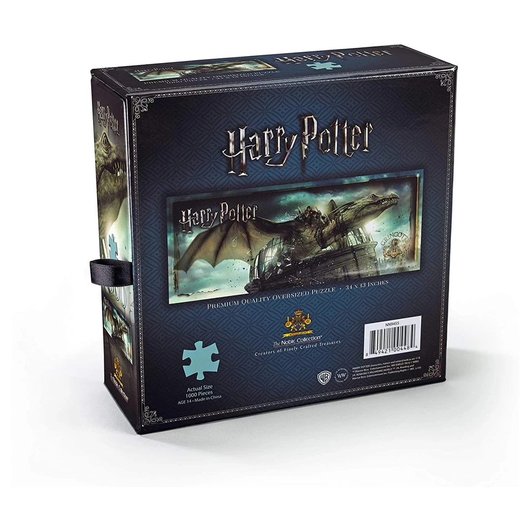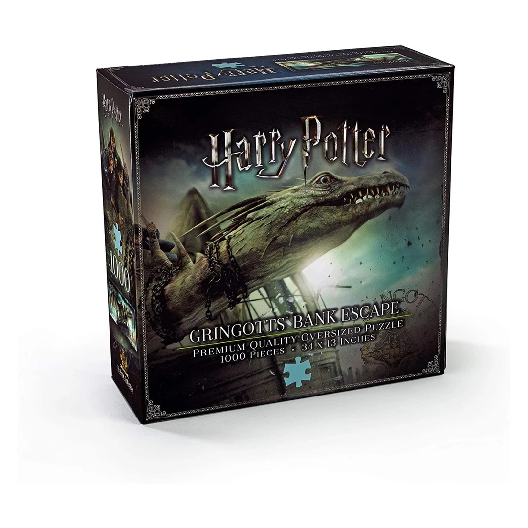 Featuring an iconic scene from Harry Potter and the Deathly Hallows, this puzzle depicts Harry, Ron, and Hermione’s dramatic escape from Gringotts Bank. Team up with friends and family or tackle it solo for a satisfying challenge. The cinematic scene makes an impressive display piece once completed. The Harry Potter Gringotts Bank Escape Puzzle is an officially licensed Harry Potter product produced by the Noble Collection. Includes 1000 pieces.