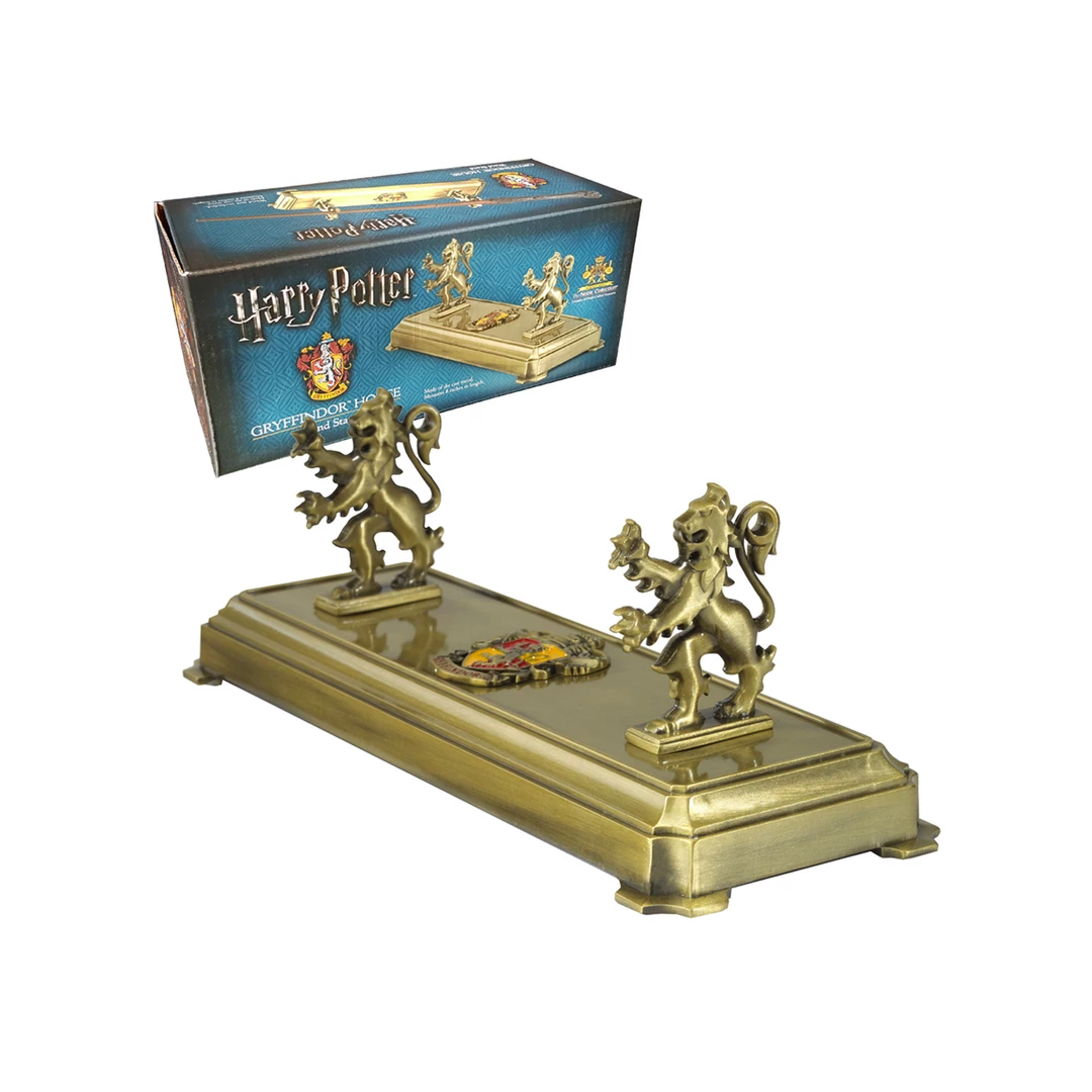 - A gold-coloured individual wand stand with the emblems of Hogwarts School of Witchcraft and Wizardry.