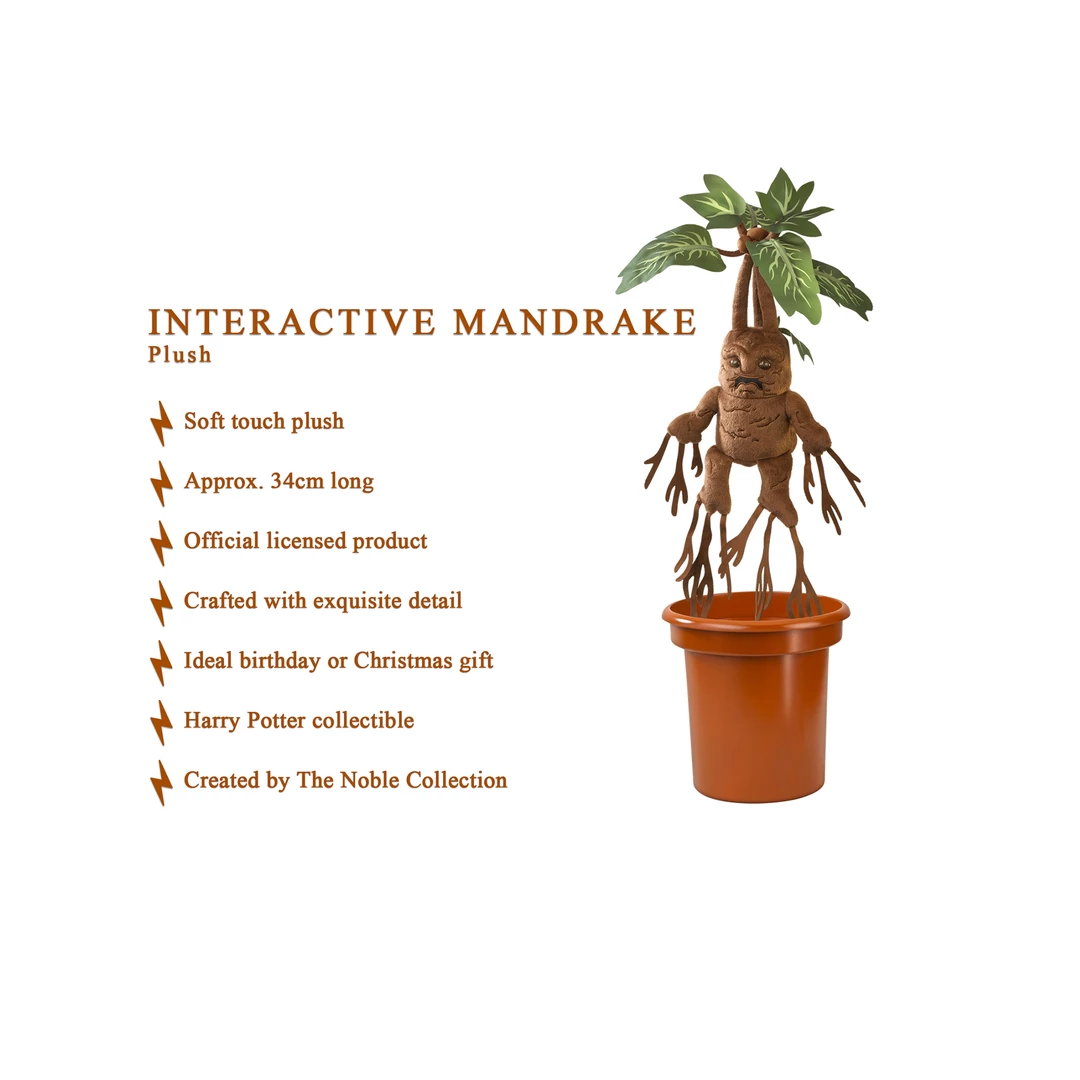 - This electronic interactive plush mandrake emits screeches and screams when pulled upwards, and (thankfully) quiets once placed back into its pot.