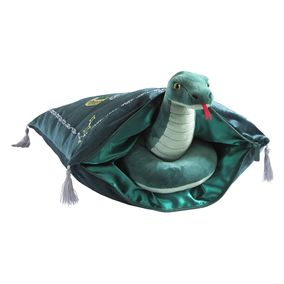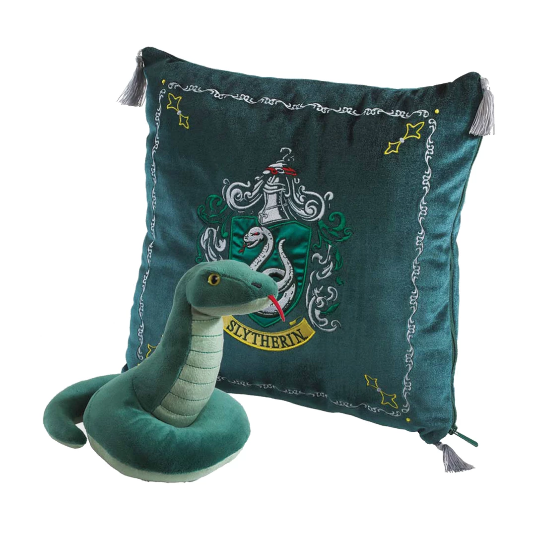 - YOUR VERY OWN SLYTHERIN COMPANION – Designed in the style of Slytherin house and inspired by the Harry Potter film series, this velvet-feel green cushion is embroidered with the Slytherin Crest and comes with a snake plush inspired by the Harry Potter film series’ Slytherin mascot.
