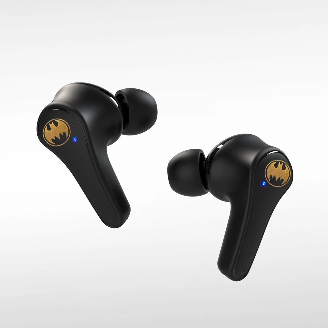 Batman TWS earpods! The Caped Crusader has arrived with these stylish black and gold wireless earphones and charging case. These small, lightweight TWS earpods deliver a full, rich and clear audio experience with deep bass, smooth mids and crystal-clear highs. Enjoy a premium sound experience with V5.0 Bluetooth technology in each earpod. These wireless earpods are perfect for travelling, commuting and exercising. Type C USB charging case provides up to 6 hours of listening time with 3 further charges. Choose from two sizes of soft silicone ear tips (small and large) to give a customized fit / create an acoustic seal for an even more immersive listening experience.