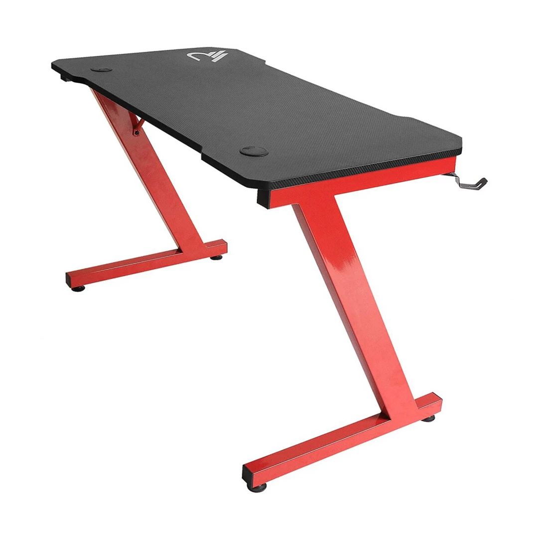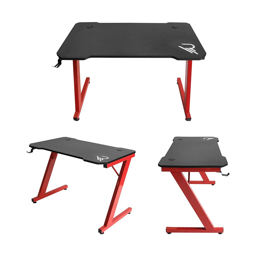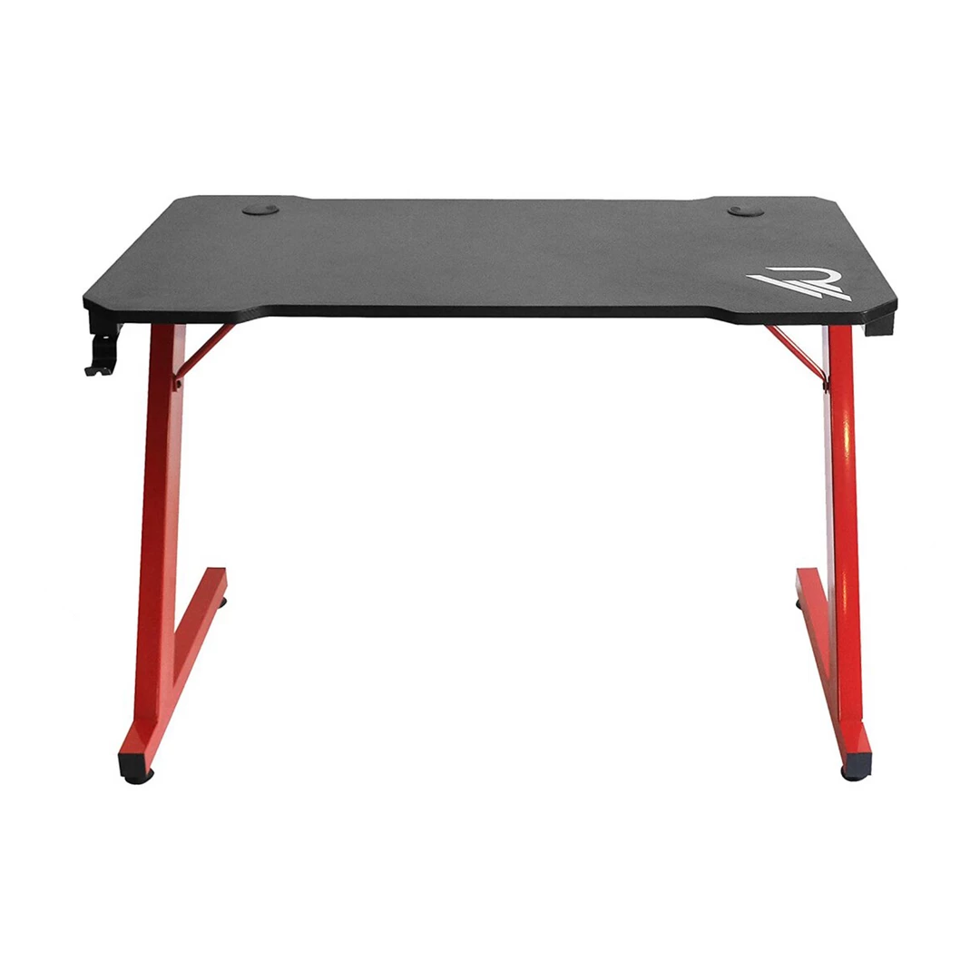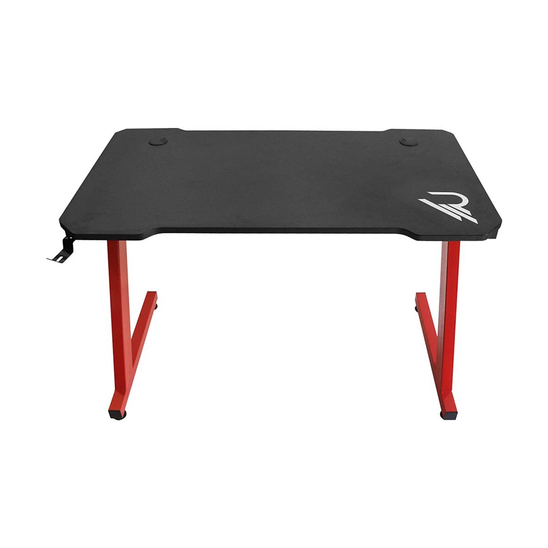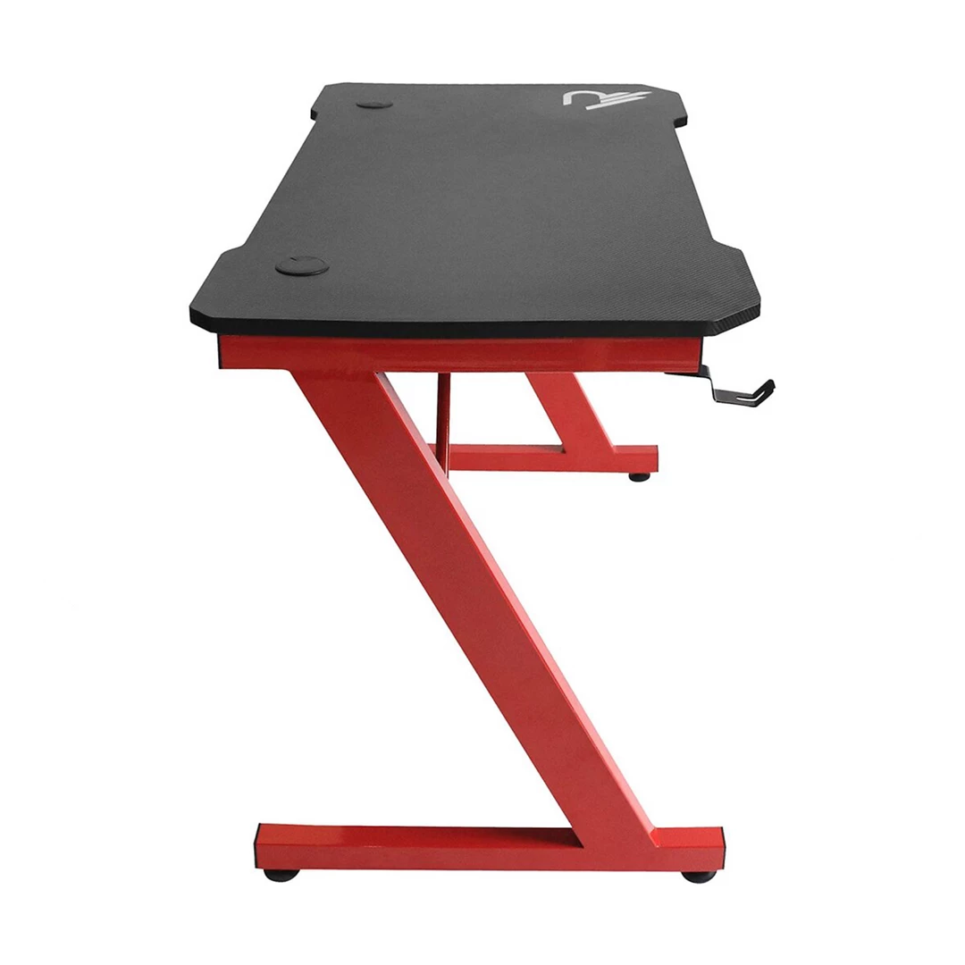 Curved Raiden gamer desk with beveled edges for maximum playing comfort. Ergonomically designed carbon finish PVC top with Raiden print (110 cms x 60 cms) to easily accommodate 2 screens and space at the back for cable management. Heavy-duty Z-shaped metal frame (can support up to 80kg).