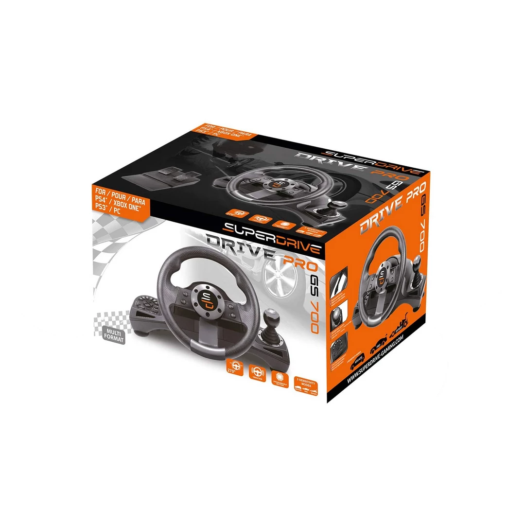 With the new GS700 live a unique, immersive and sensational racing experience on PS4, Xbox One, PC and PS3. The steering wheel comes with 3 driving modes to adapt the sensitivity of the steering wheel to the type of circuit you are racing. The 240 rotation makes for more realism and precision driving. Plus the wheel has vibration for more realistic sensations. Replaces fully the controller: menu navigation via the directional pad and buttons on the steering wheel.